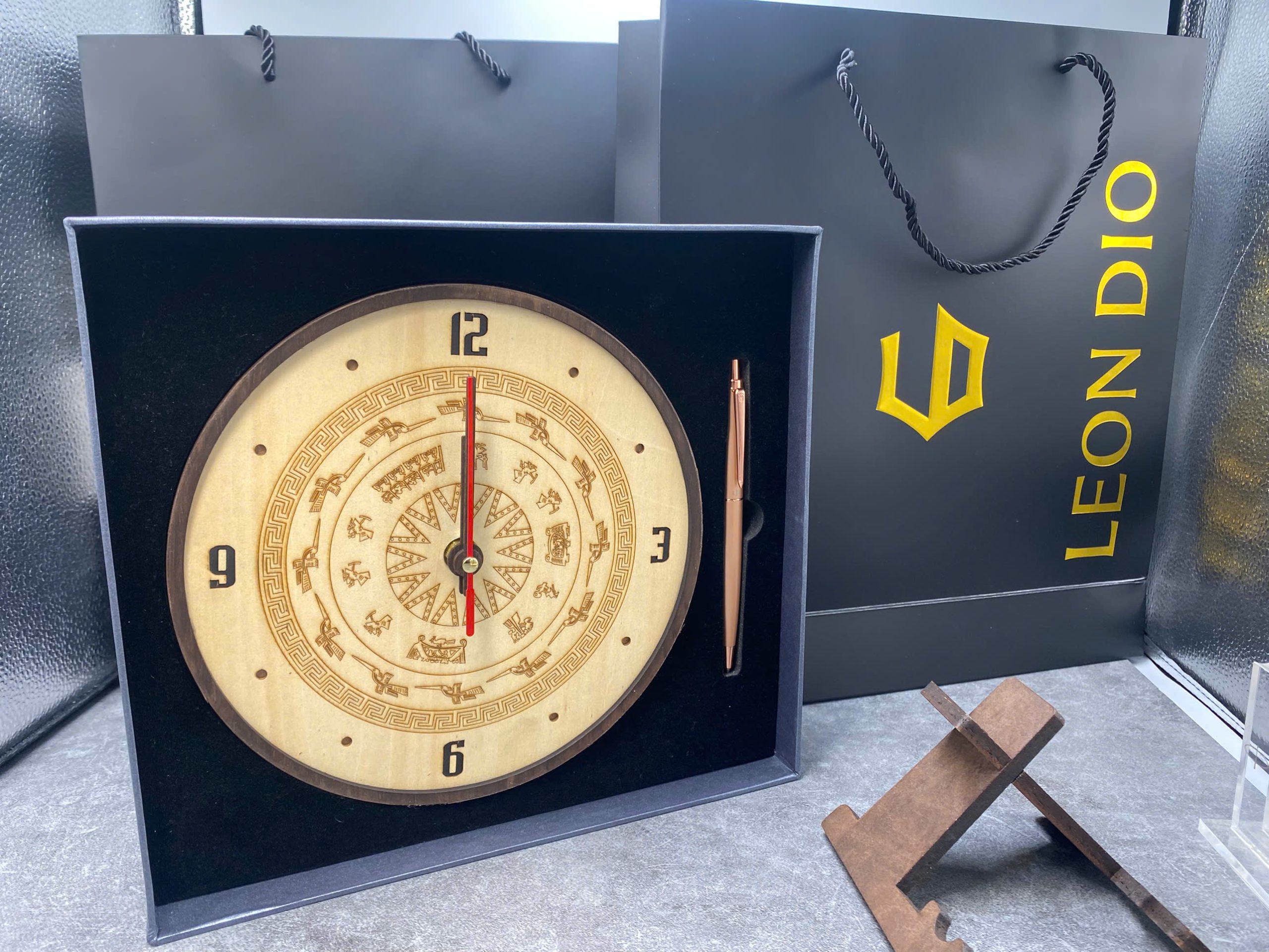 – Tên sản phẩm: GiftSet Đồng Hồ Trống Đồng và Bút Ký Leon Dio.